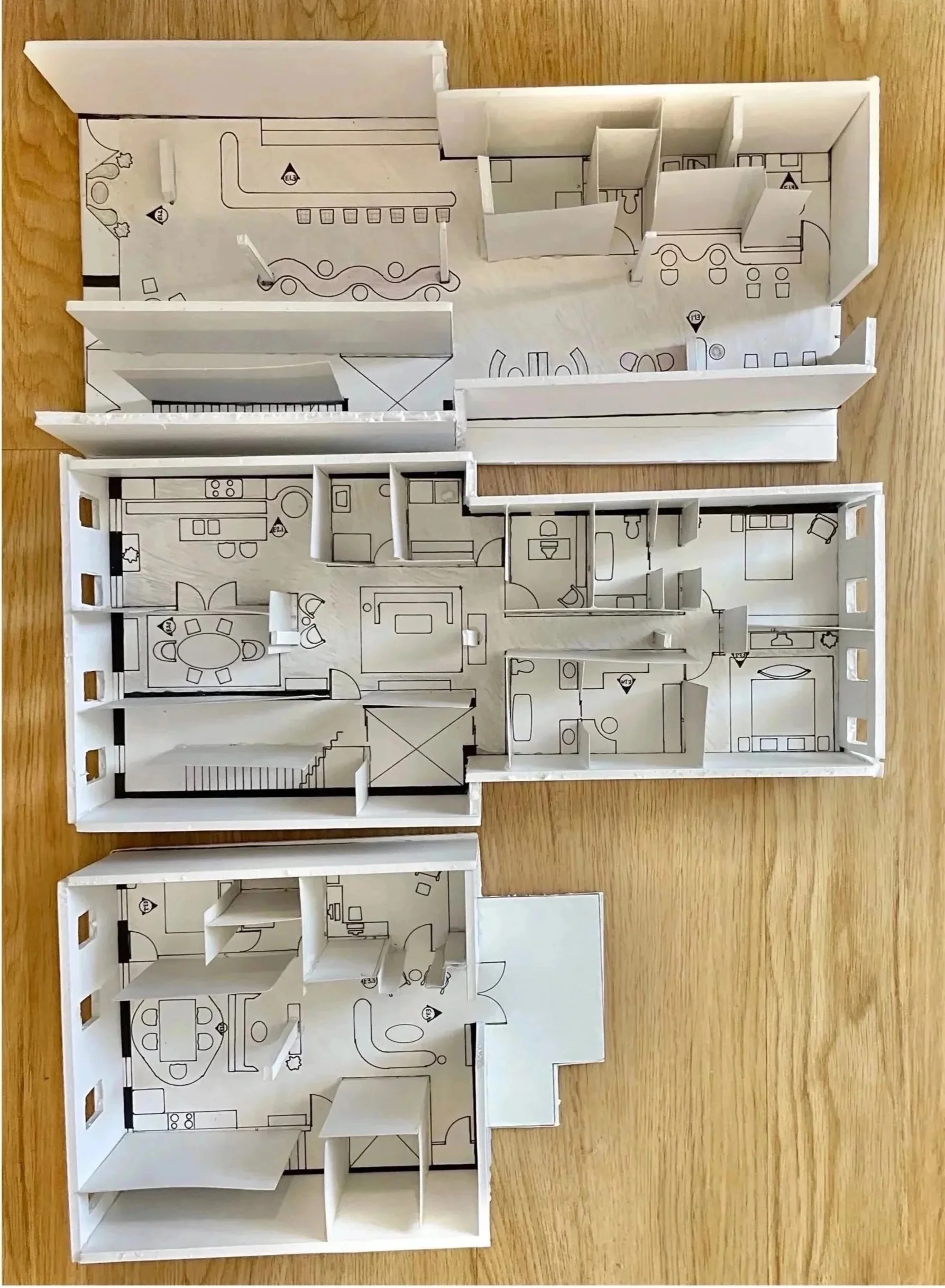 Model for 3 story Boston Brownstone, 1st floor Cafe, 2nd and 3rd floor Private Residence
